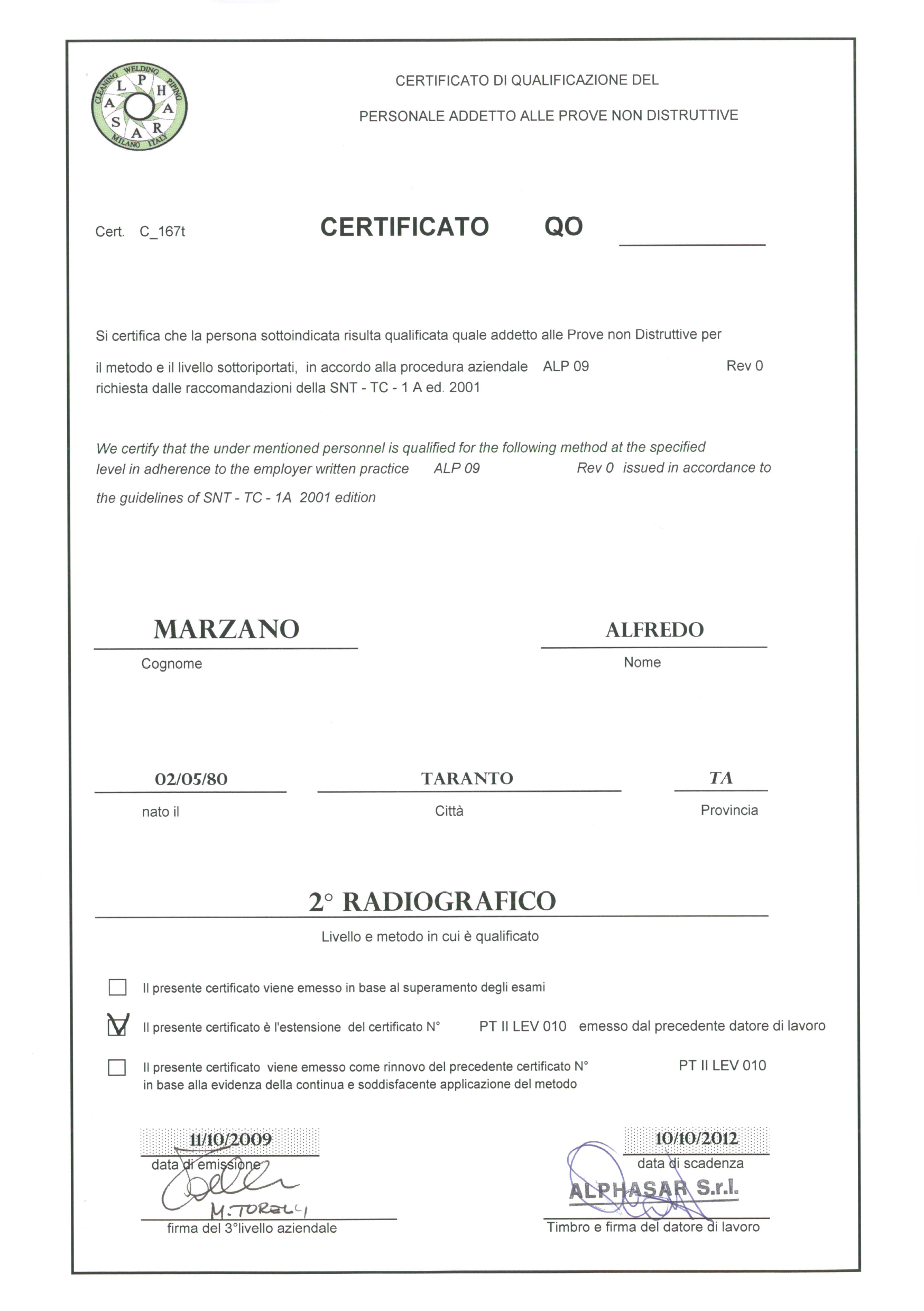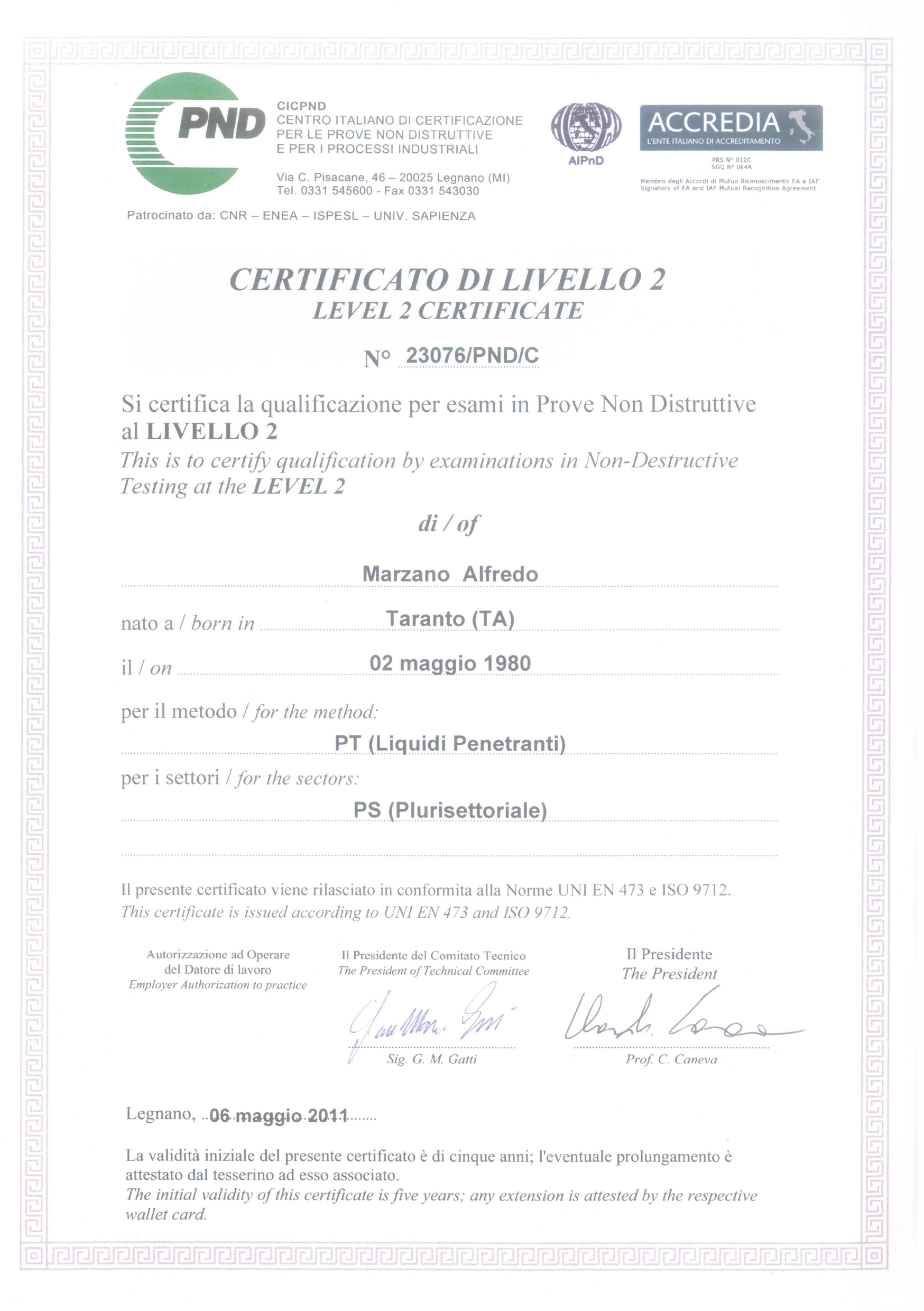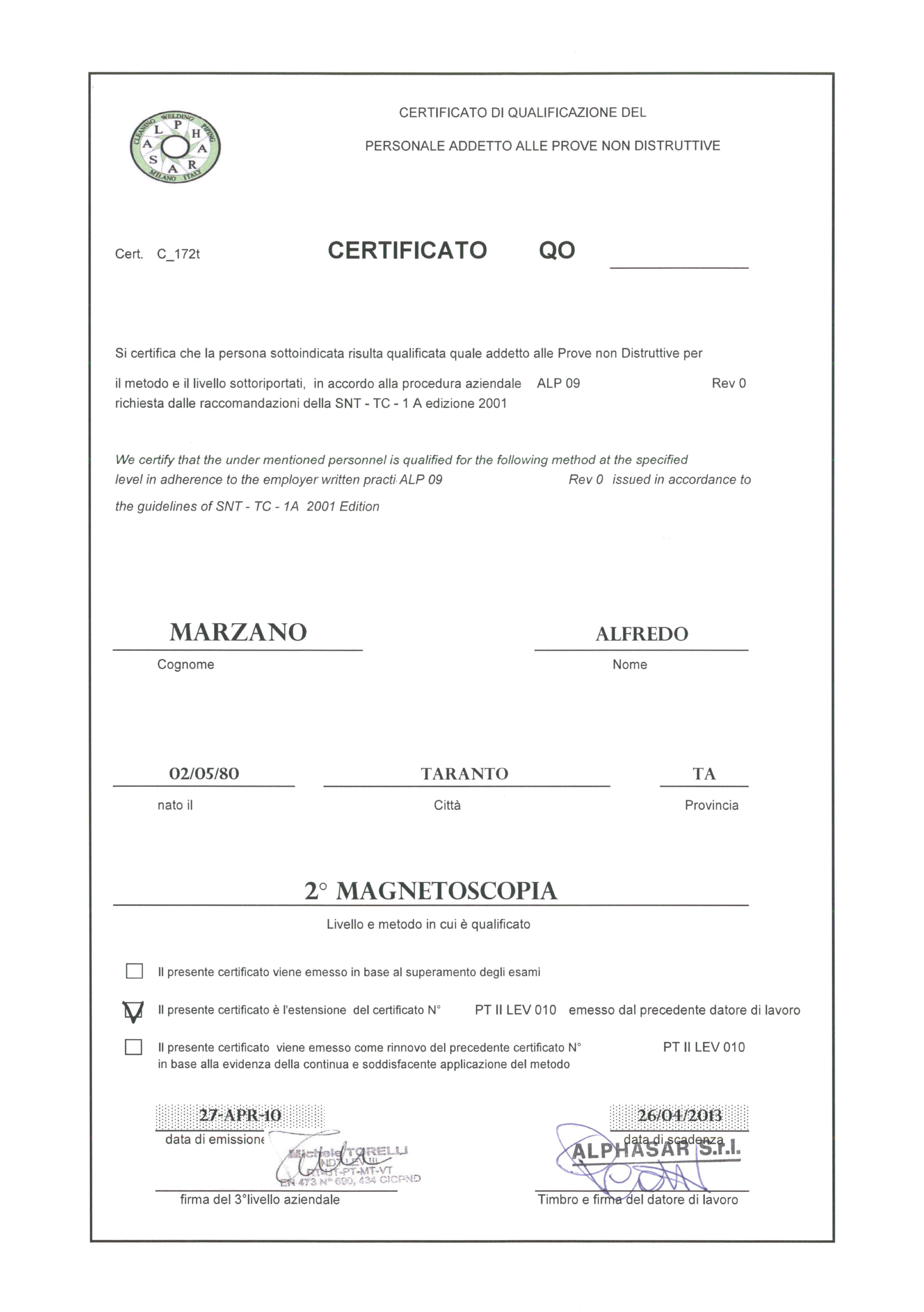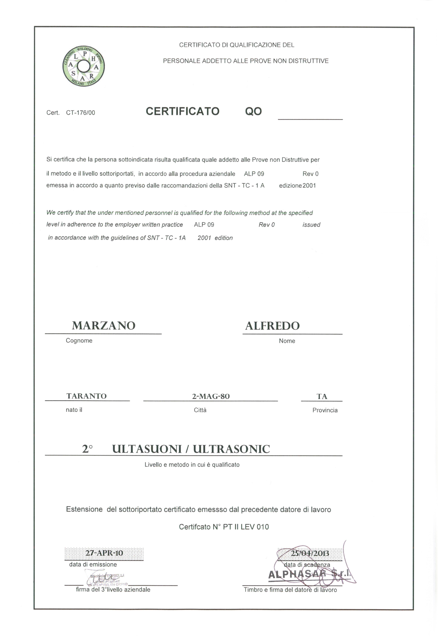 The via Molinara plant is the headquarters of the NDT department, composed of operators qualified in all non-destructive testing according to American and European standards.