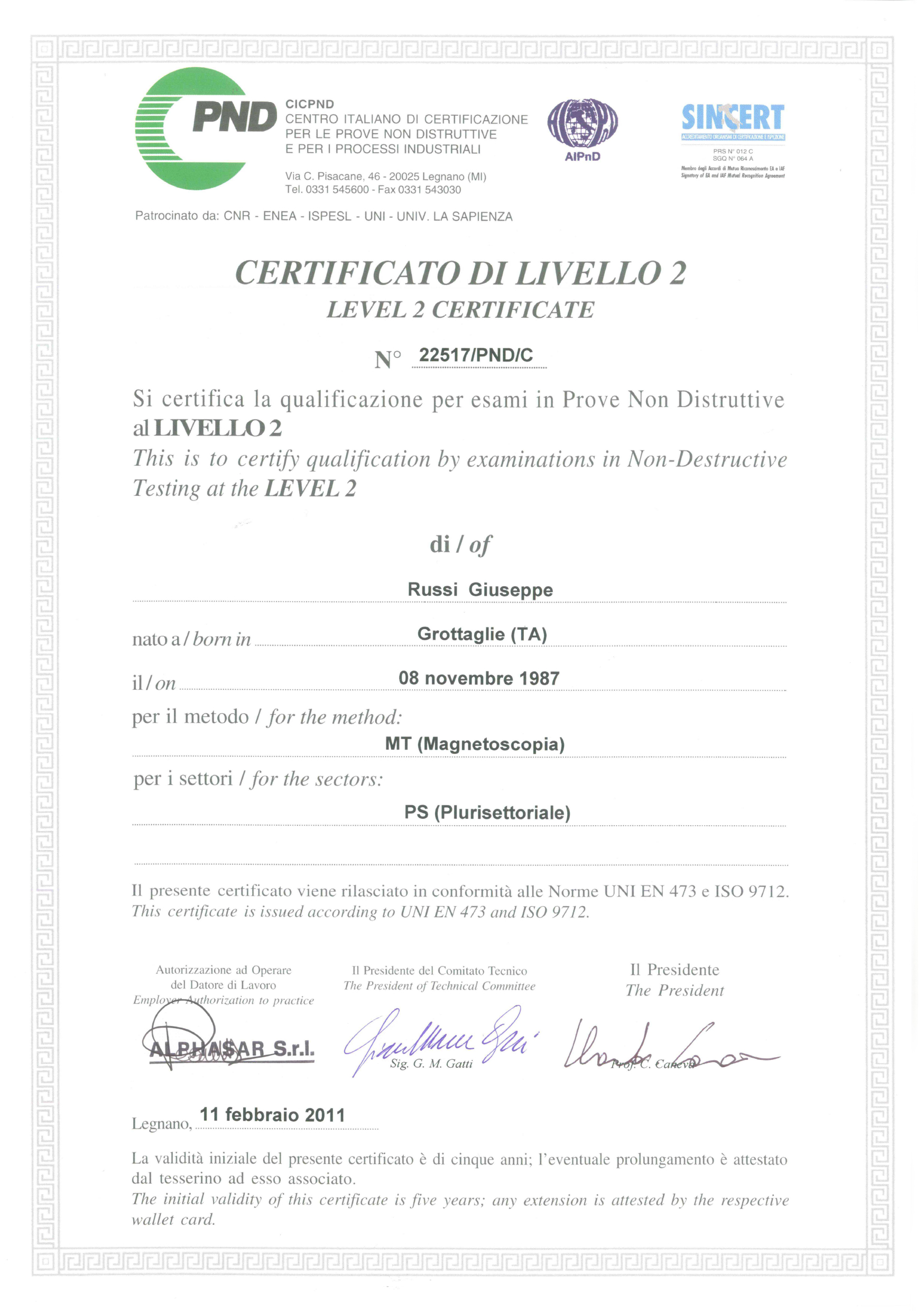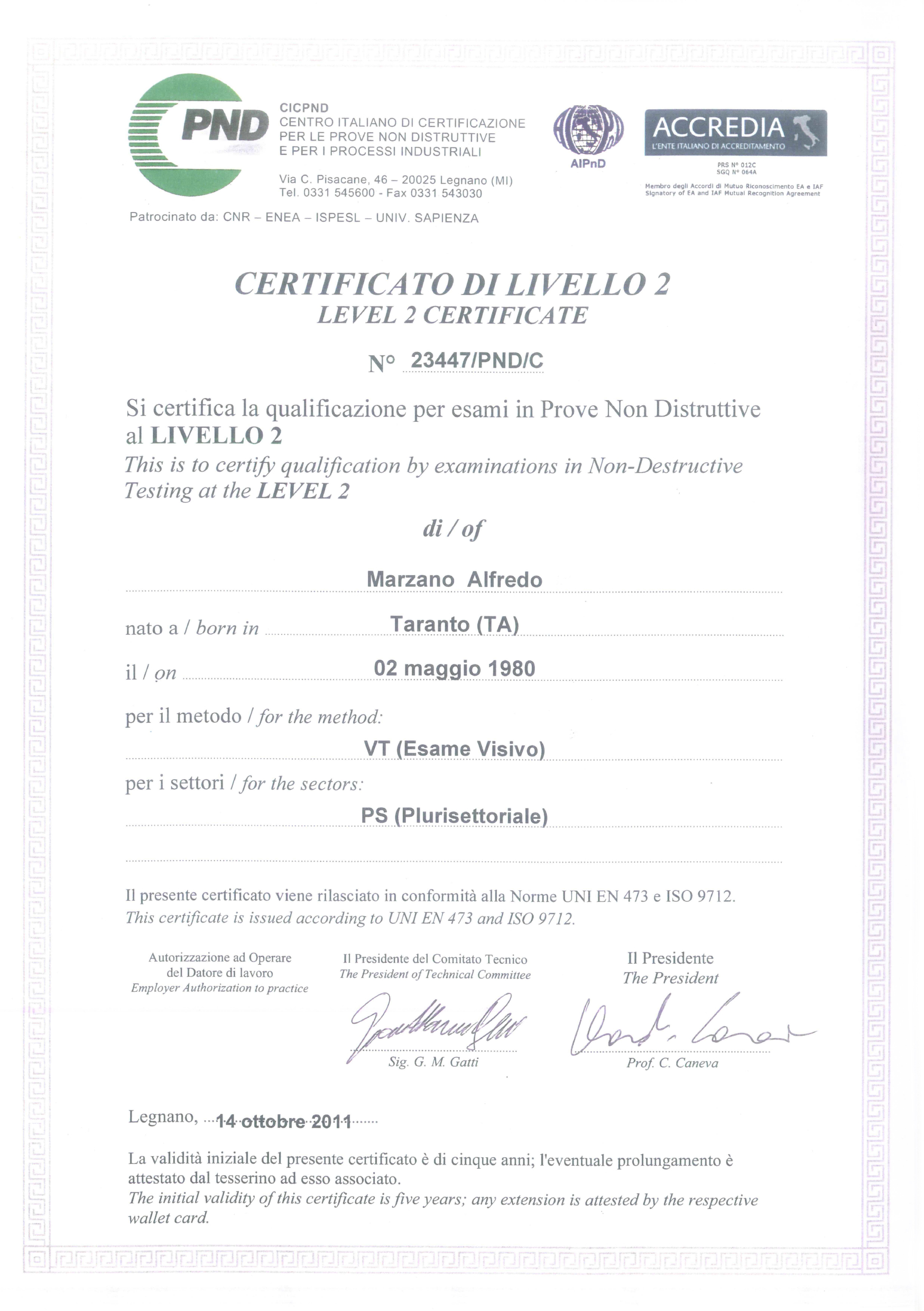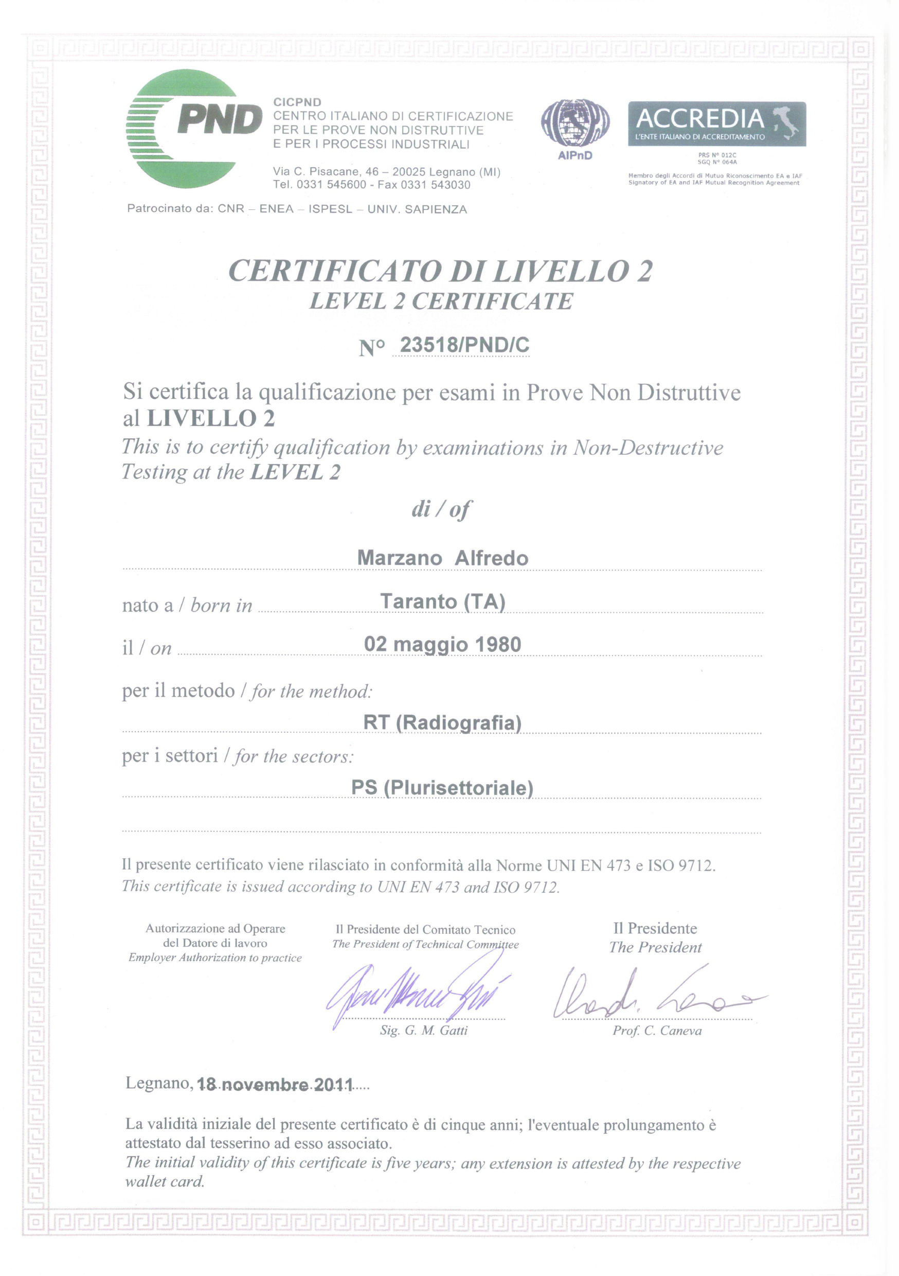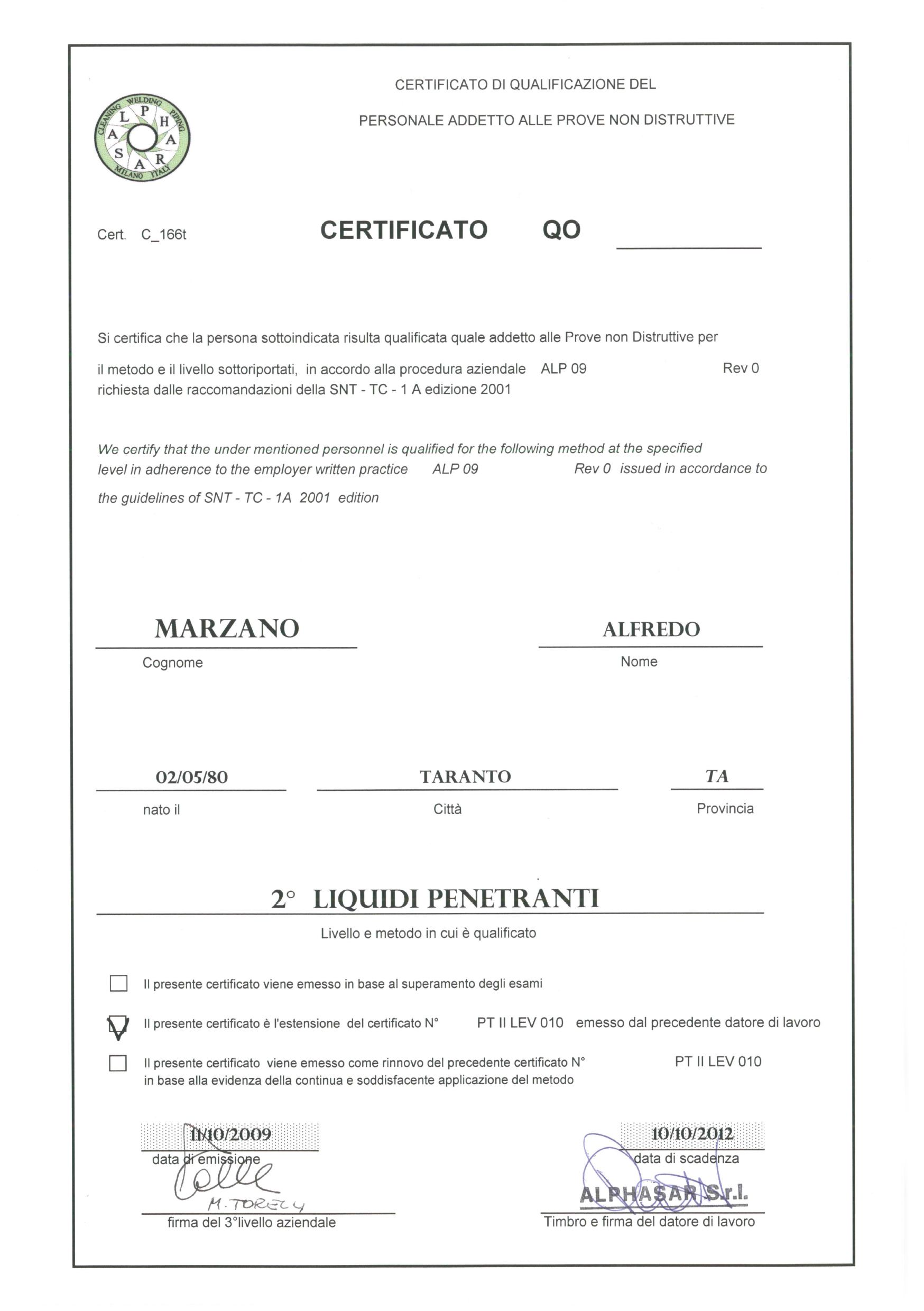 The via Molinara plant is the headquarters of the NDT department, composed of operators qualified in all non-destructive testing according to American and European standards.